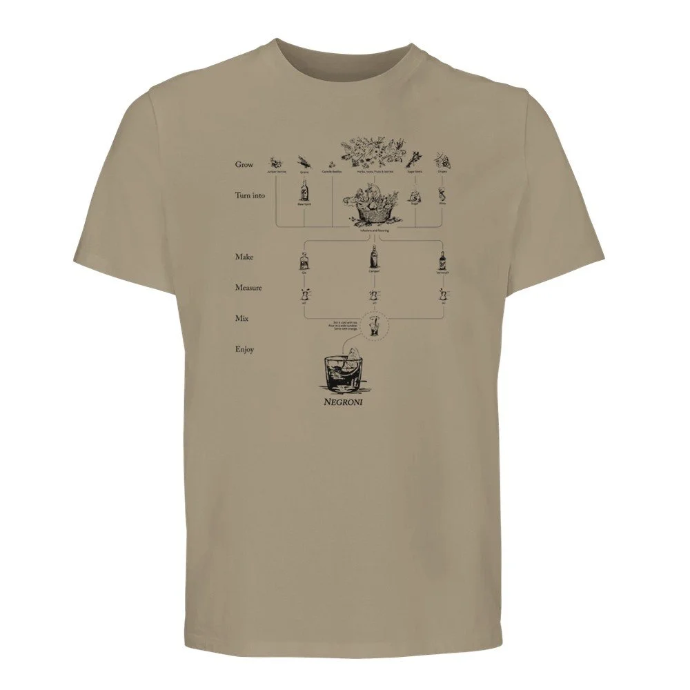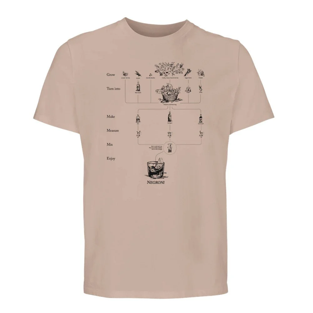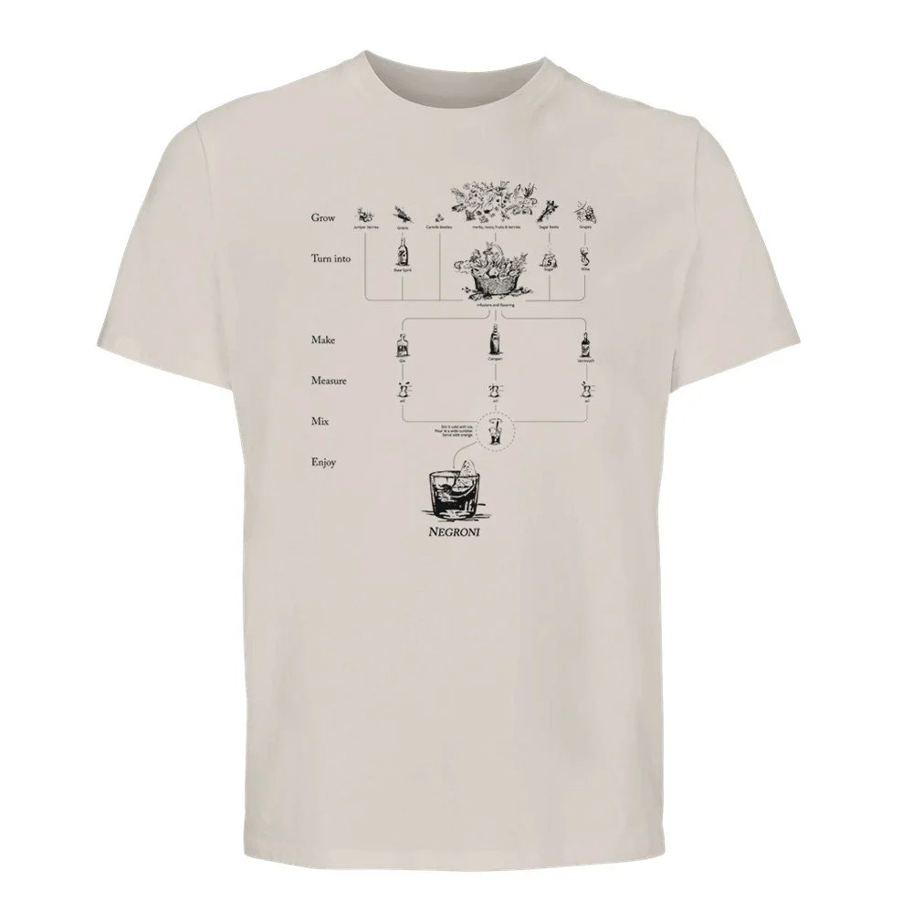 Carry your passion for a well crafted cocktail where everyone can see it. Our series of "Respect the Cocktail" t-shirts feature our favourite drink recipes and the work and effort required to accomplish them. 100% combed organic cotton in conversion (farms converting to organic), 175gsm jersey fabric for a comfortable fit. Ribbed collar and taped neck for durability. Side seams for a structured look.